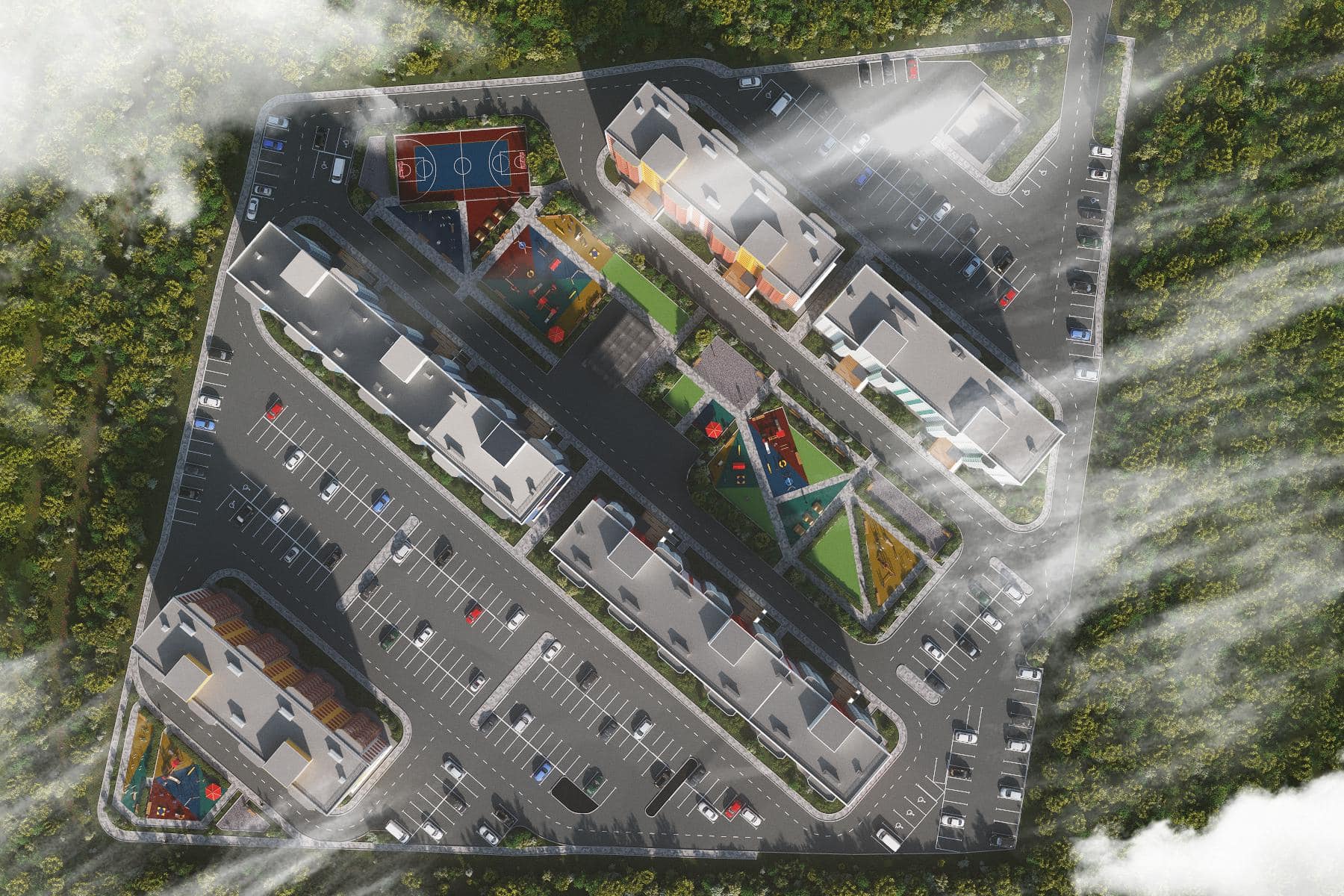 на безопасном расстоянии от детских площадок. Удобная схема проезда не заставит жителей и гостей комплекса испытывать трудности с передвижением по территории.