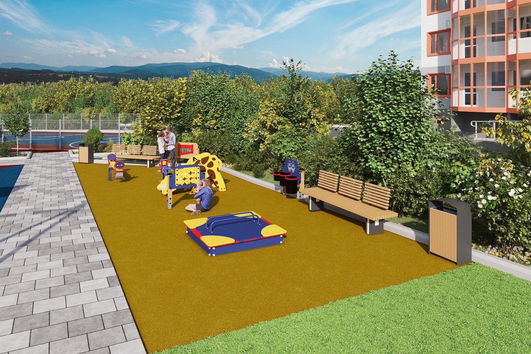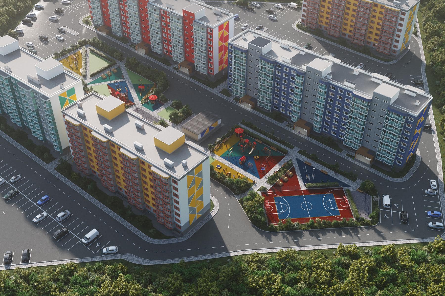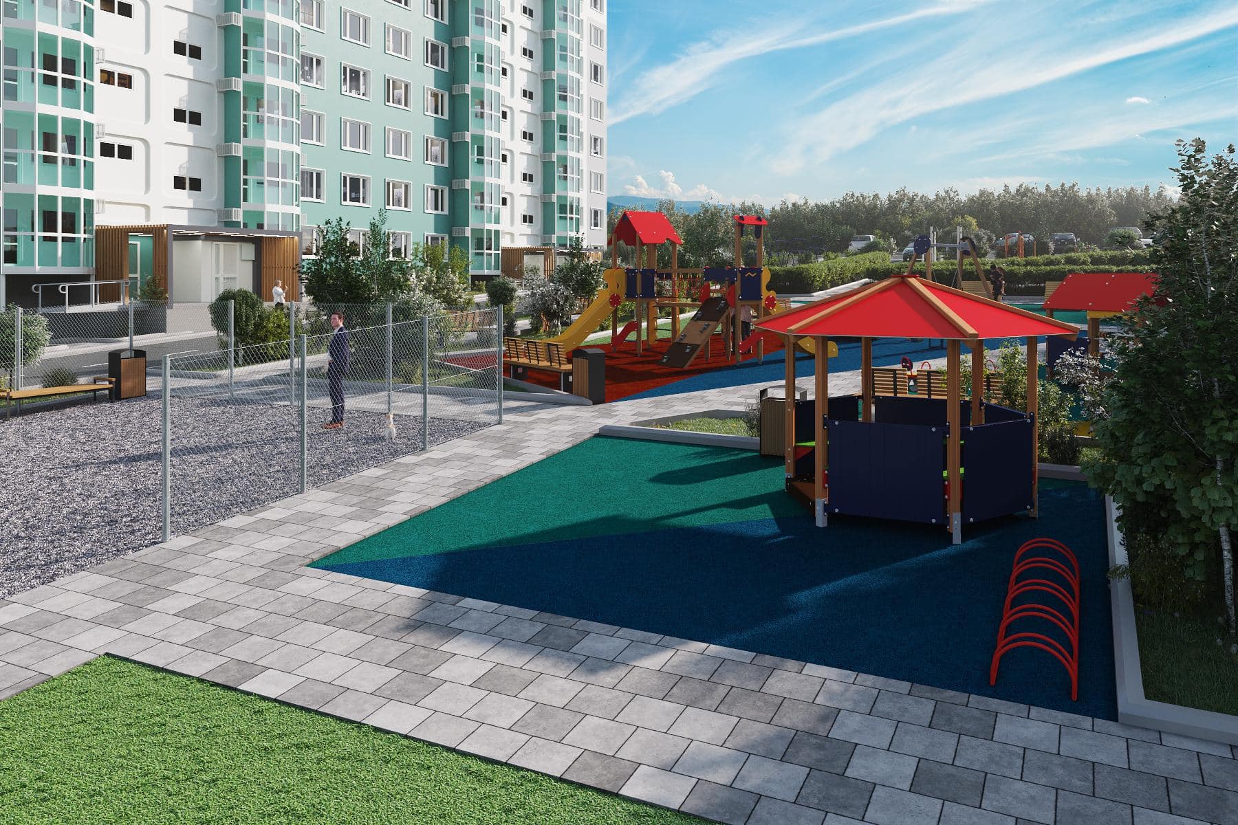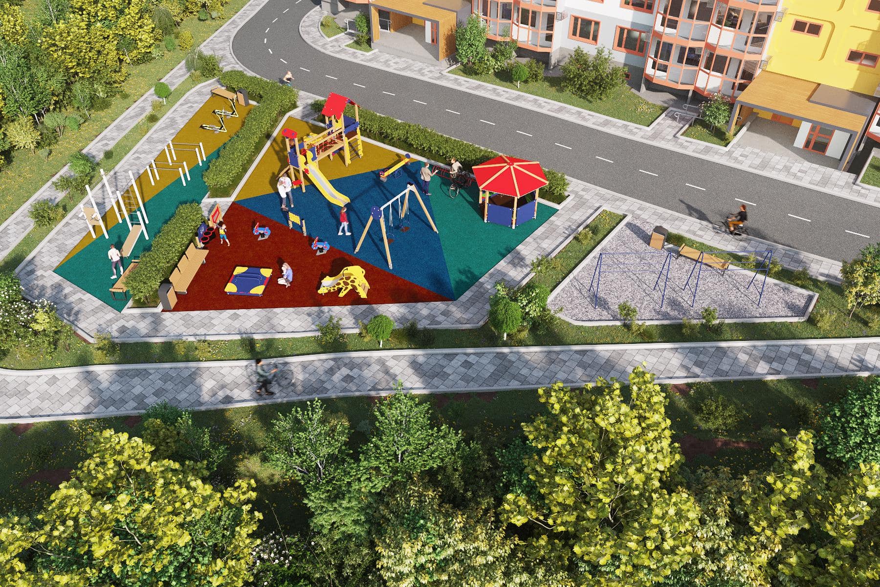 Калейдоскоп – баланс между функциональностью и эстетикой. Акцент планировки территории сделан на интересы разных поколений: детям – закрытые современные площадки для разных возрастов, взрослым – спортивные площадки и зоны отдыха.