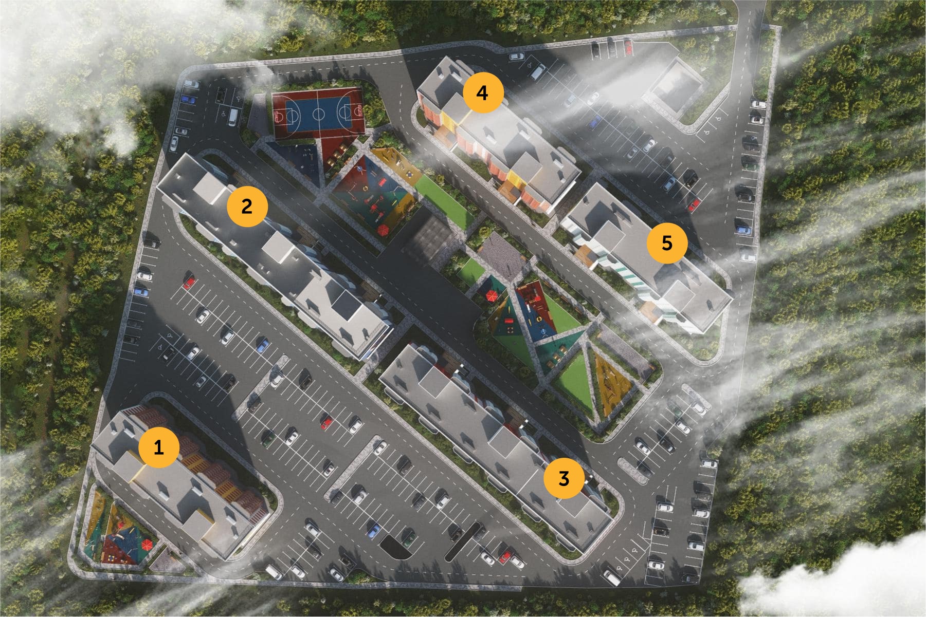 на безопасном расстоянии от детских площадок. Удобная схема проезда не заставит жителей и гостей комплекса испытывать трудности с передвижением по территории.