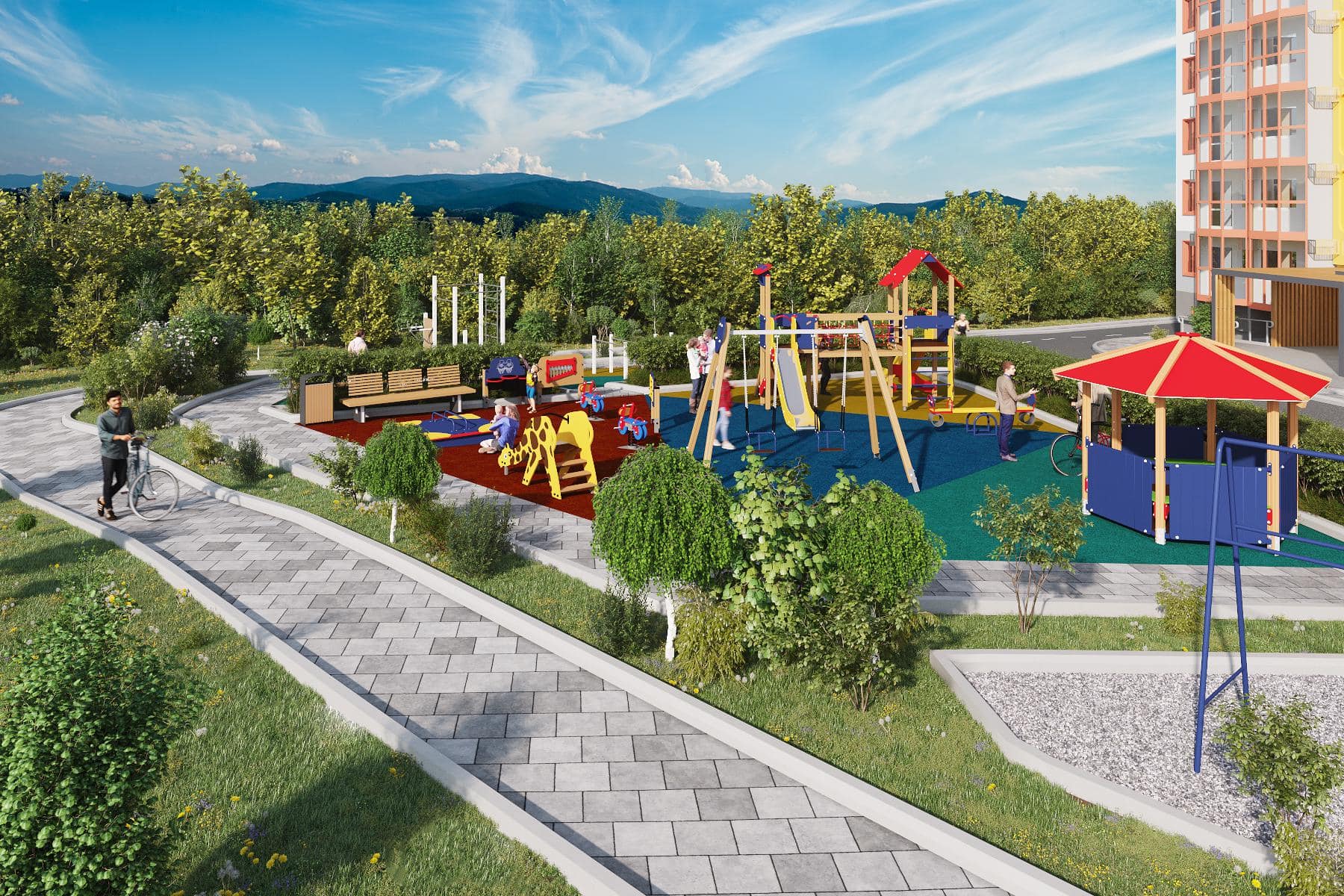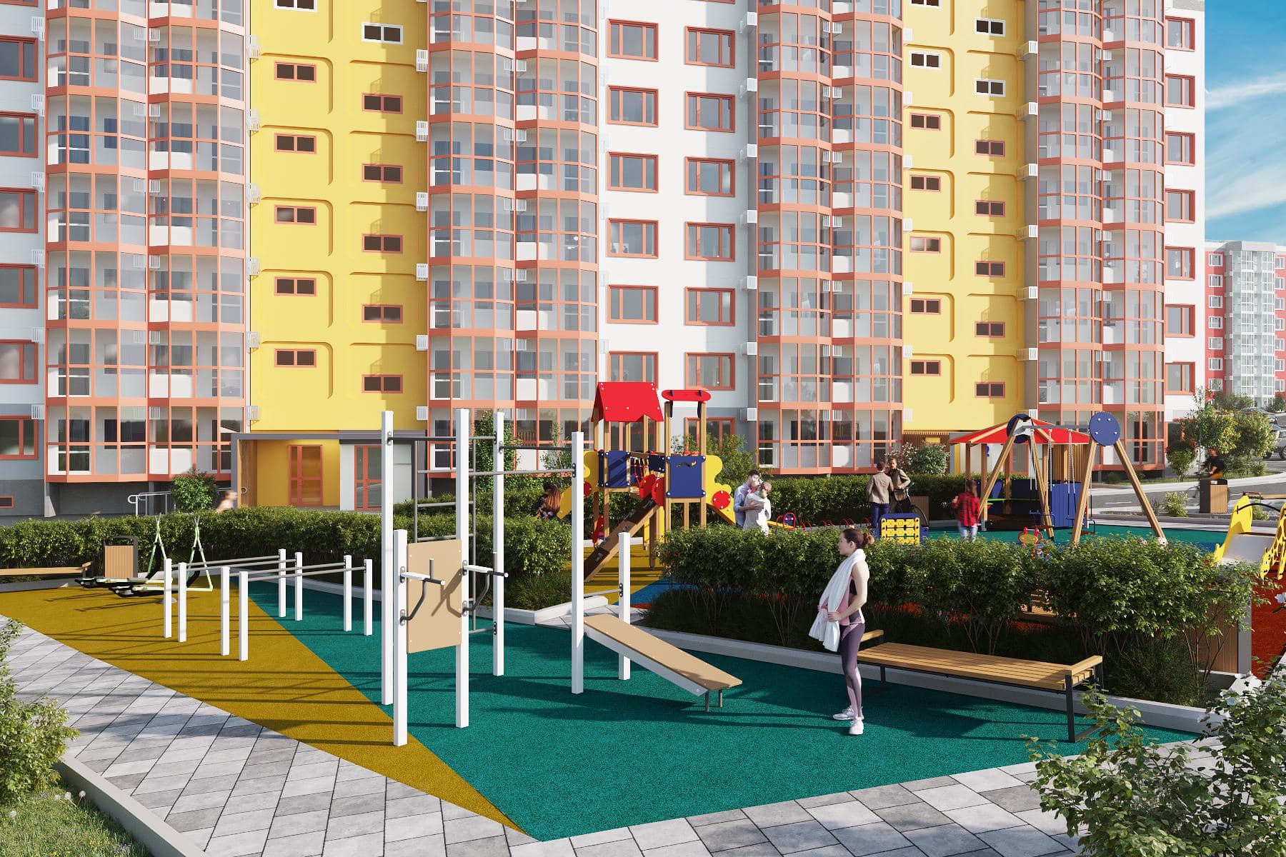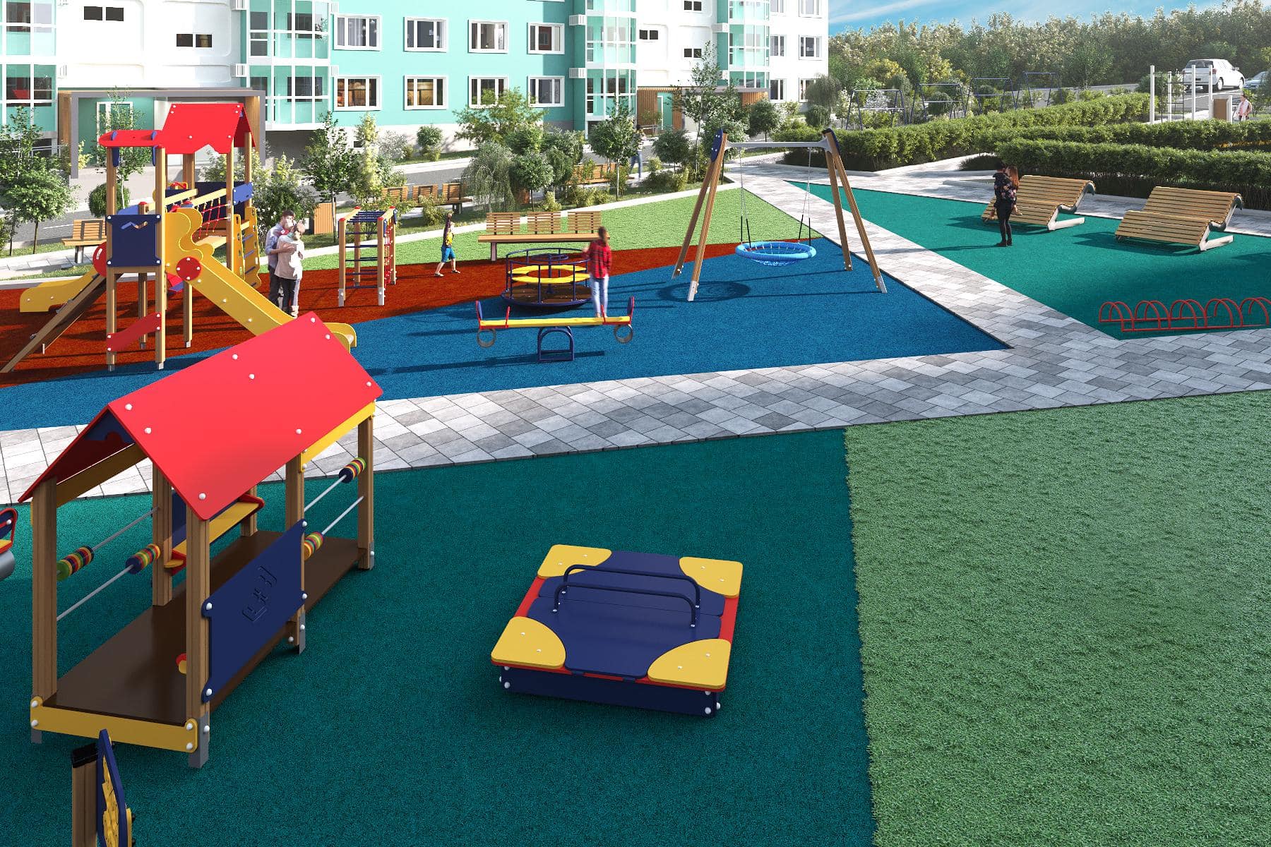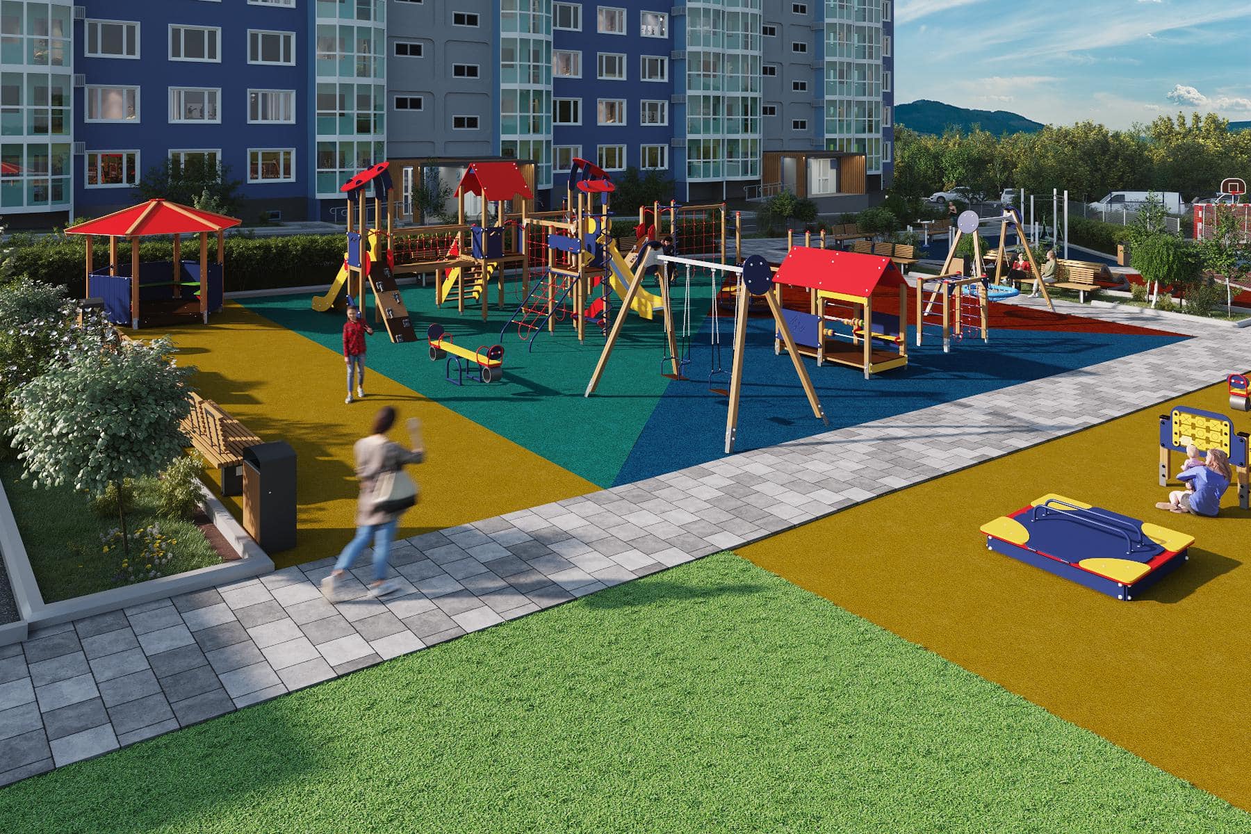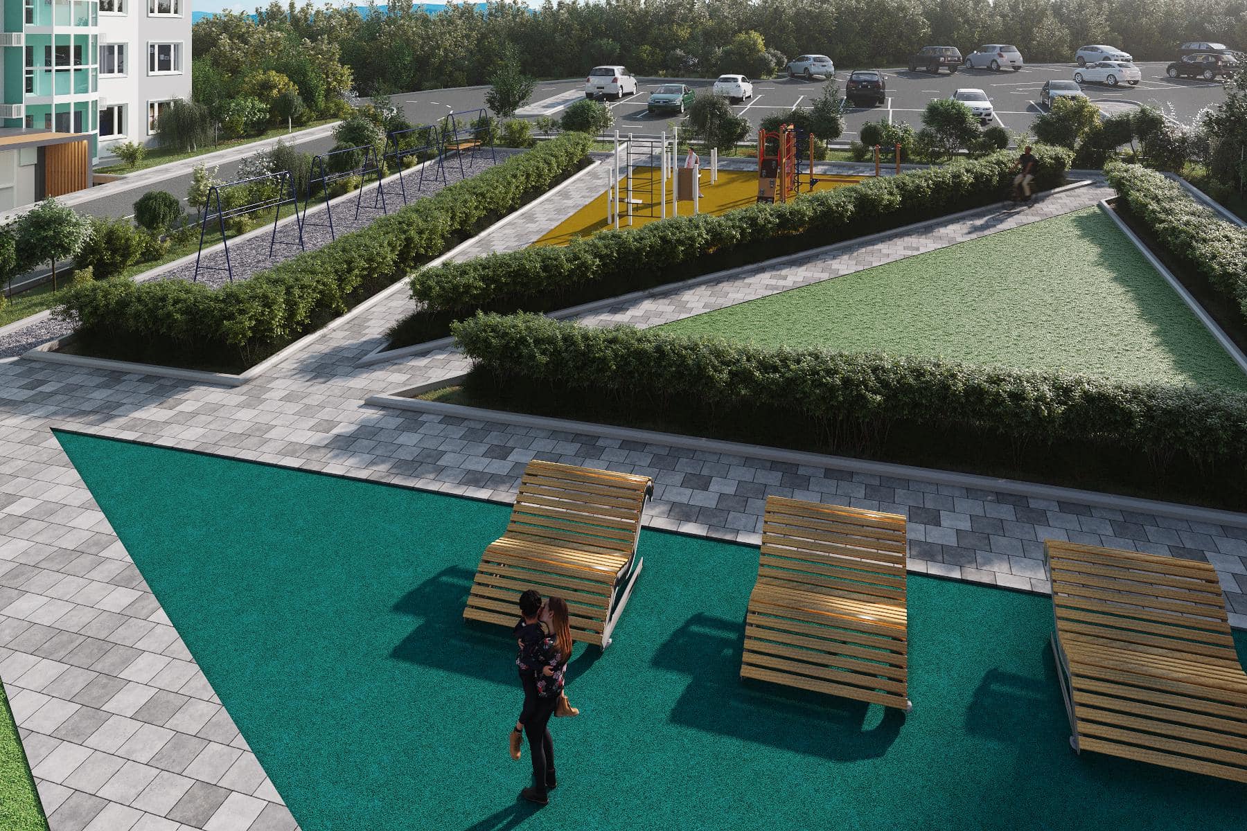 Калейдоскоп – баланс между функциональностью и эстетикой. Акцент планировки территории сделан на интересы разных поколений: детям – закрытые современные площадки для разных возрастов, взрослым – спортивные площадки и зоны отдыха.